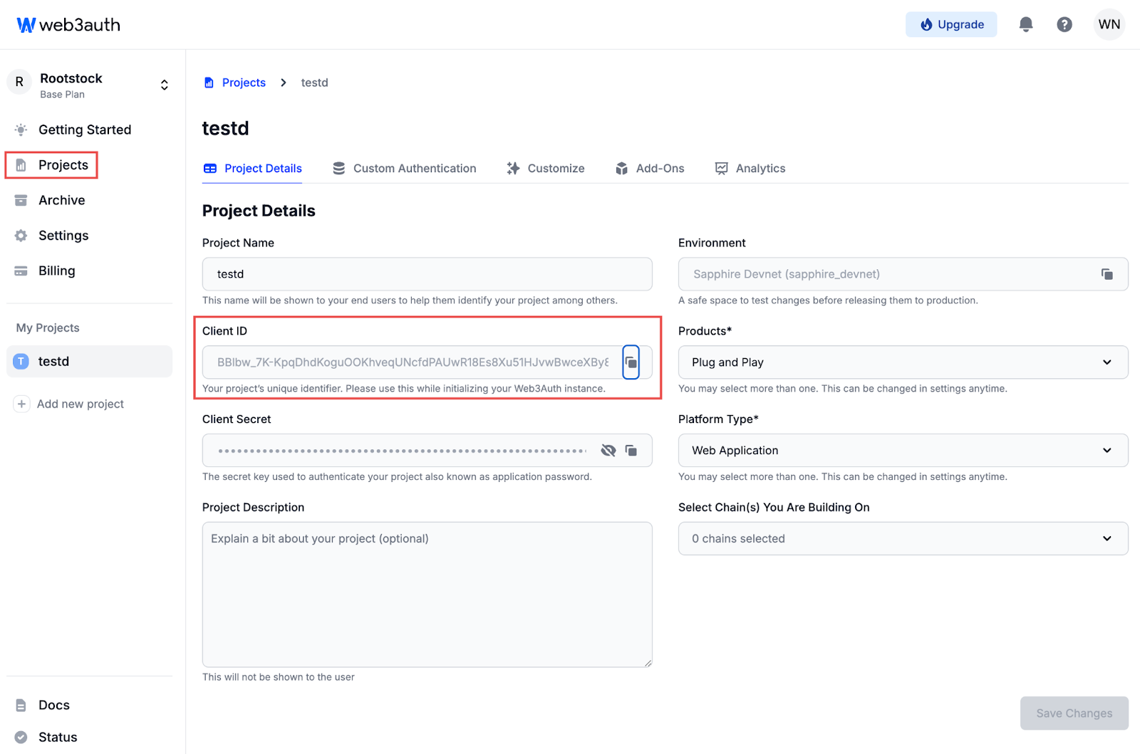 - Copy the Client ID from the dashboard. This will be used for initializing Web3Auth.