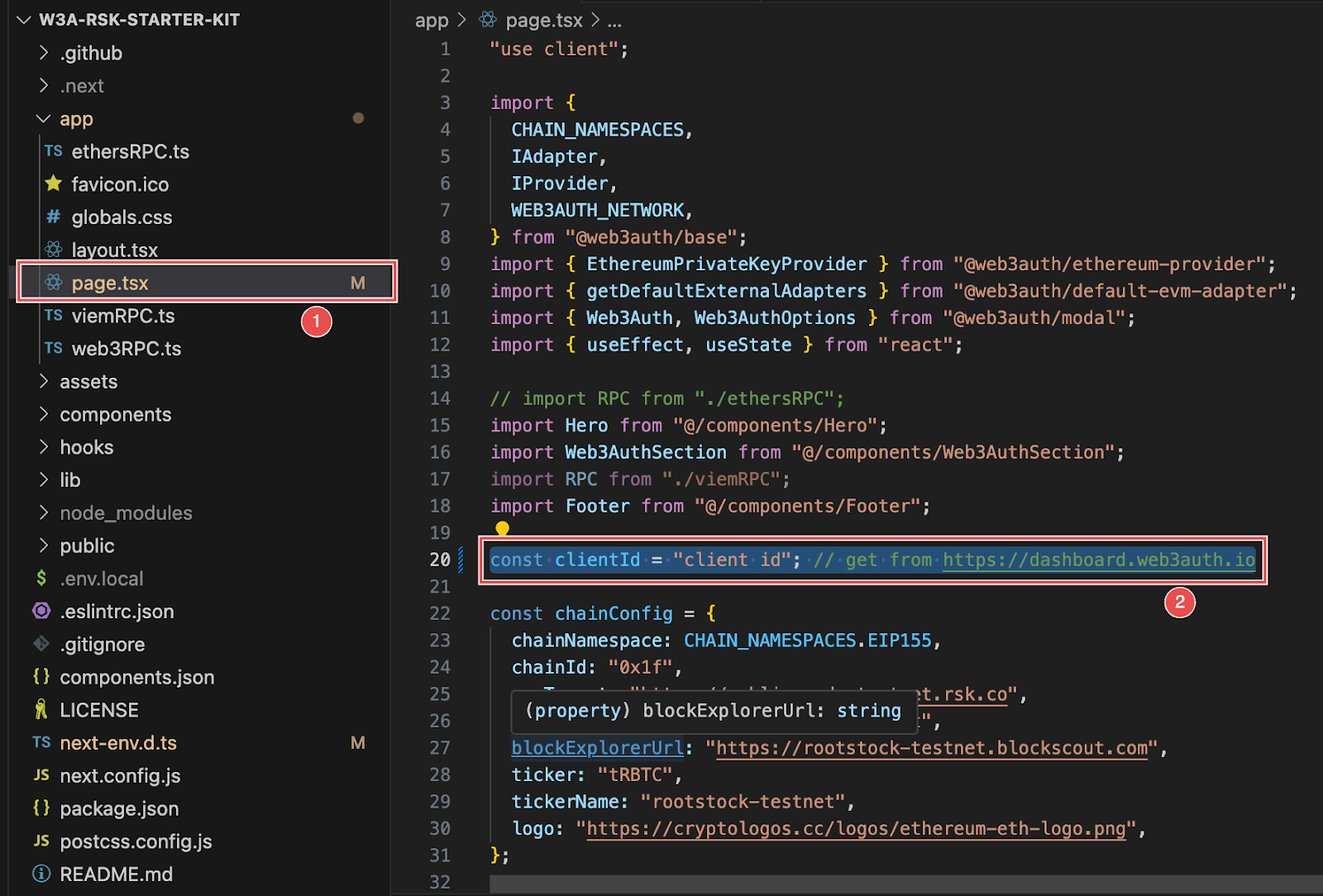 page.tsxfile in your project. - Copy and paste the copied Client ID into the appropriate configuration field in your code.